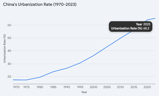 Did you know that China's urban population skyrocketed from 26% in 1990 to an astonishing 64% in 2023?